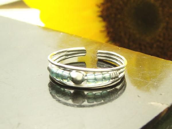 フリーサイズリング 爽やかアクアなビーズを使用した足指リング 送料無料