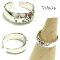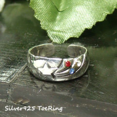 フリーサイズリング レッド ブルー クリアのストーンが流れ星を強調する足指リング 送料無料