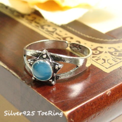 星の中にターコイズカラーの円を閉じ込めたトゥリングです。星はかっこよく見えますが、リングが細いので女性らしいアイテムです。
