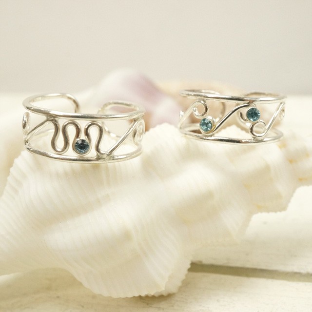 フリーサイズリング キラリと輝くスワロフスキーと細めの模様がキュートな足指リング 送料無料