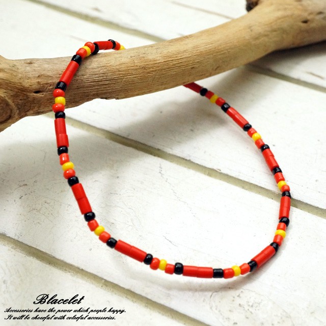 目を引くような鮮やかな赤いビーズが夏らしいブレスレットです!