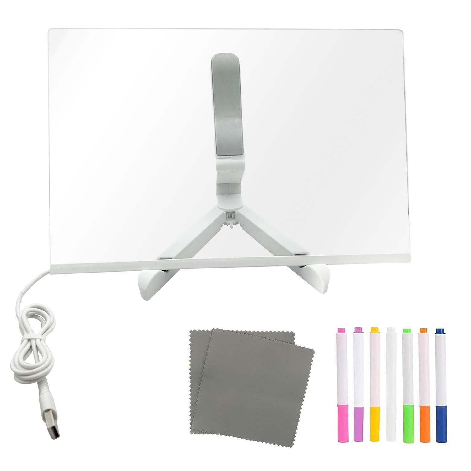 LEDライティングボード ノートボード 30×20cm 透明アクリル メッセージボード 光るお絵かき板 7色蛍光ペン付き 書き換え可能 ((S