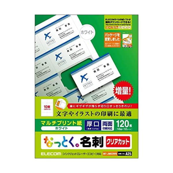 エレコム MT-JMK2WN なっとく名刺 厚口クリアカット ホワイト 120枚 A4 上質紙 名刺