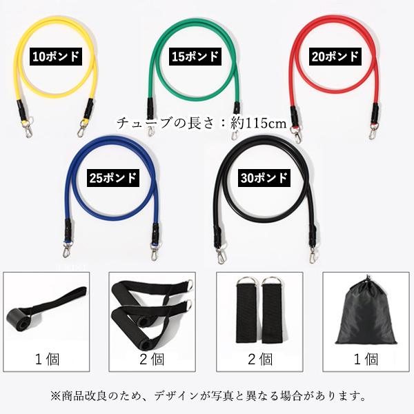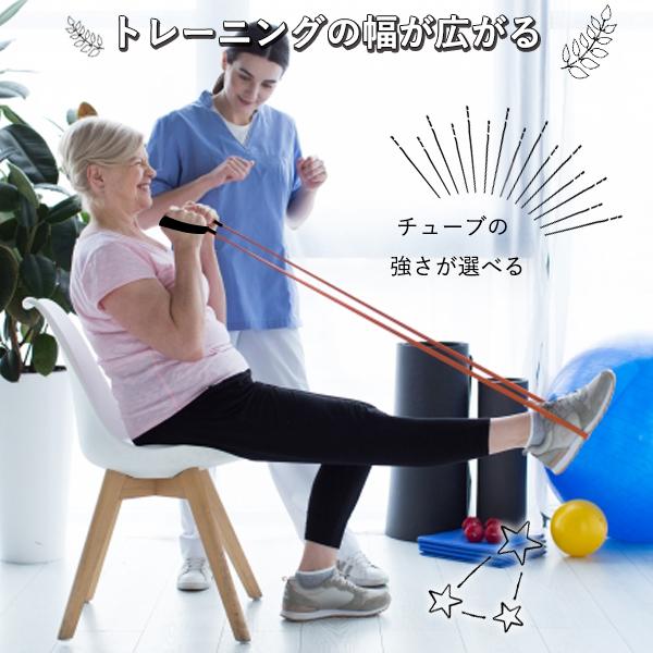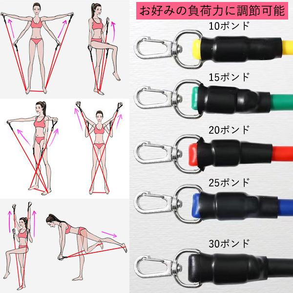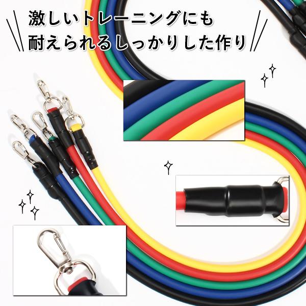・負荷の異なる5本のトレーニングチューブが入っているので、お好みに合わせて調整ができます。