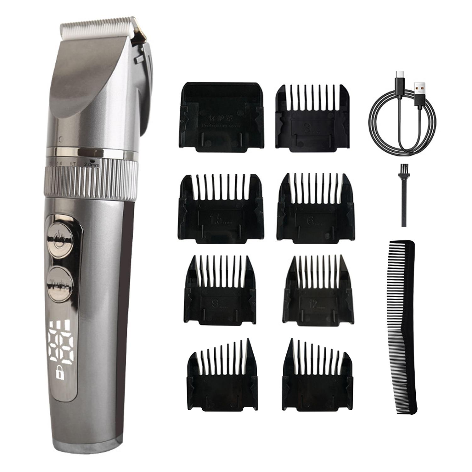 バリカン 電動 セラミック刃 防水 USB急速充電 静音 アタッチメント付き 刈り長さ調整 スピード調整 低振動 LEDディスプレイ ((S