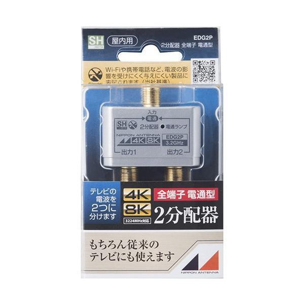 日本アンテナ EDG2P 屋内用2分配器 シールド型 4K8K対応 全端子電流通過型