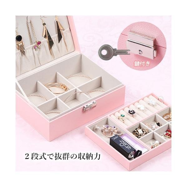 ジュエリーケース アクセサリーケース ジュエリーボックス 大容量 指輪 ネックレス アクセサリー収納 鍵付き 時計 ピンク