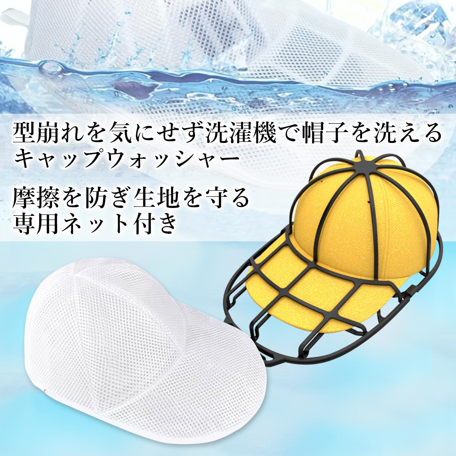 キャップウォッシャー 洗濯ネット付き ブラック キャップ 帽子 型崩れ防止 洗濯機 収納 吊り下げ収納 ((S