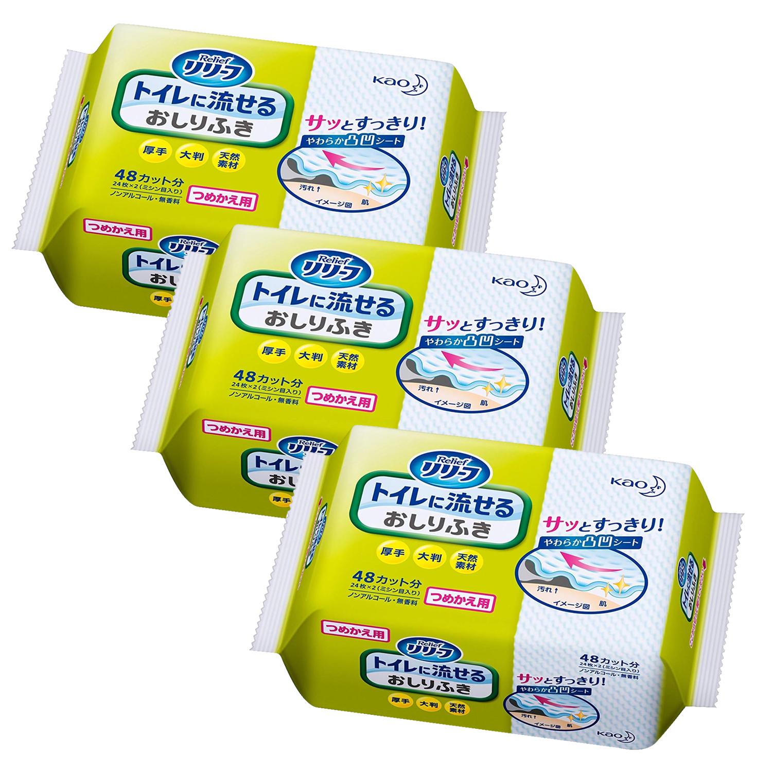 3個セット 花王 リリーフ トイレに流せるおしりふき つめかえ用 24枚 (48カット) Kao