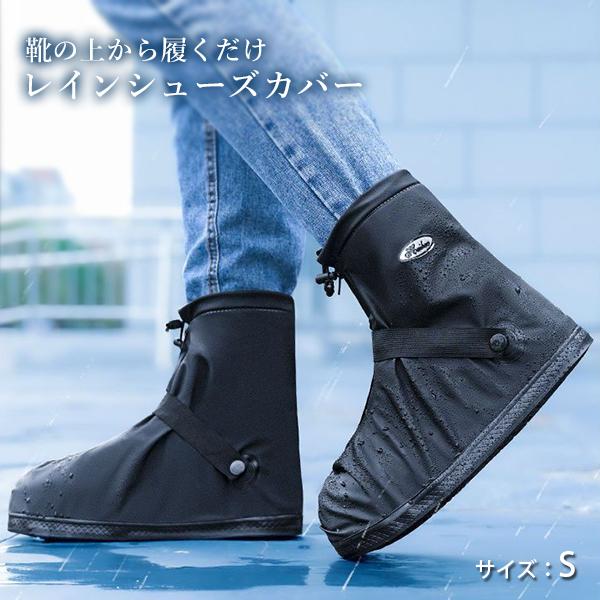 レインシューズカバー 登山 防水 おしゃれ レインシューズ シューズカバー ブラック S 靴 カバー折りたたみ 雨具 レインブーツ ((S