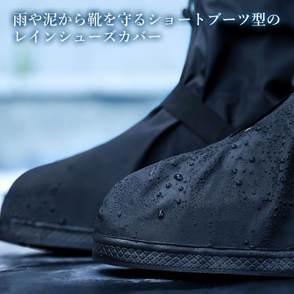 雨の日に靴の上から履けくだけで雨や泥から靴を守るショートブーツ型のレインシューズカバー