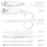 ・爪切り2種、爪やすり、カットはさみ、ピンセット、耳かきのセットです。