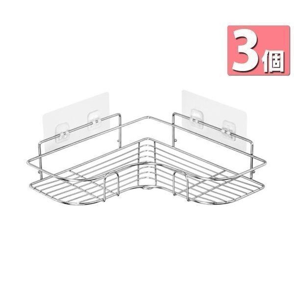 3個セット 浴室ラック コーナーラック 収納ラック 穴あけ不要 お風呂 ラック 強力粘着 ステンレス製 浴室 台所 収納 ((S