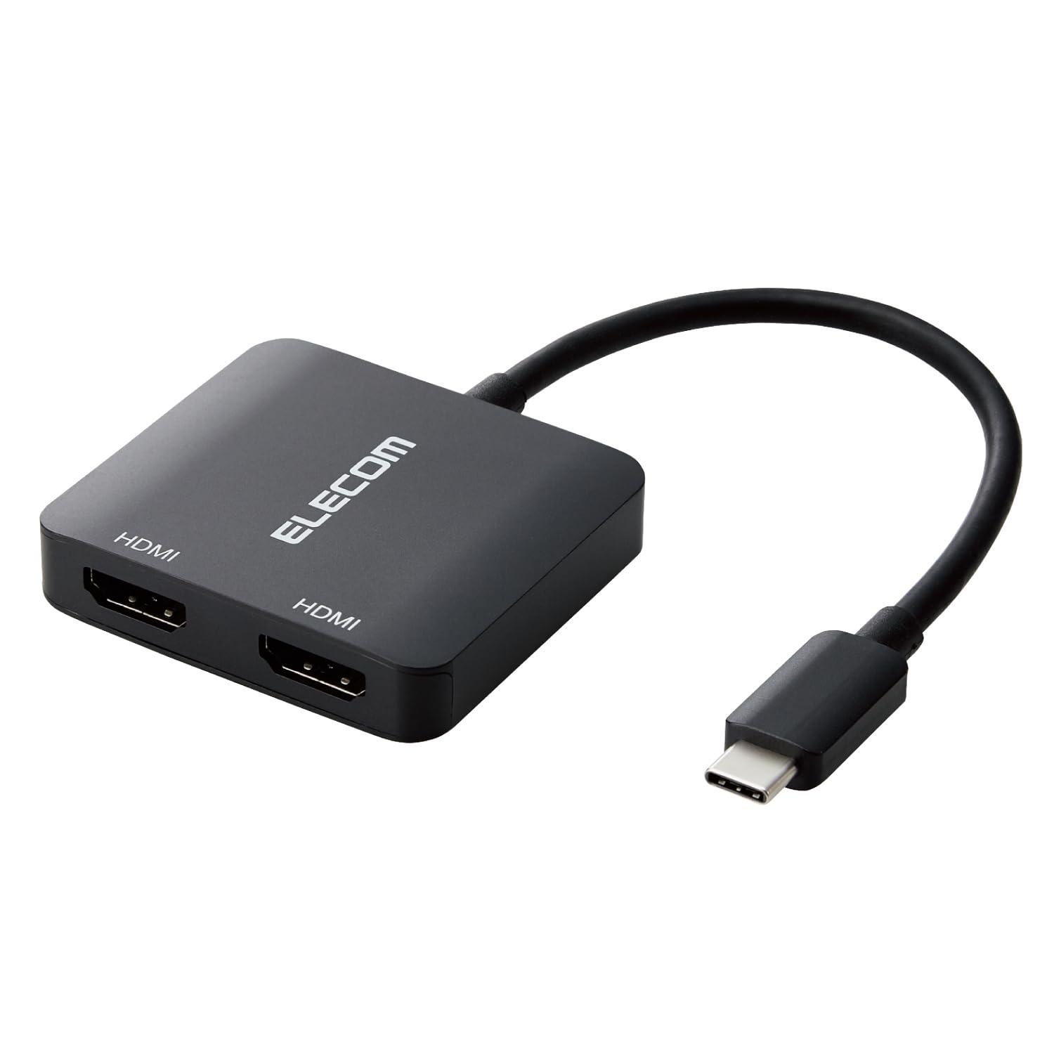 エレコム usb c 変換アダプタ Type-C to HDMI 2ポート 4K 0.12m ケーブル ブラック AD-CHDMI2BK2