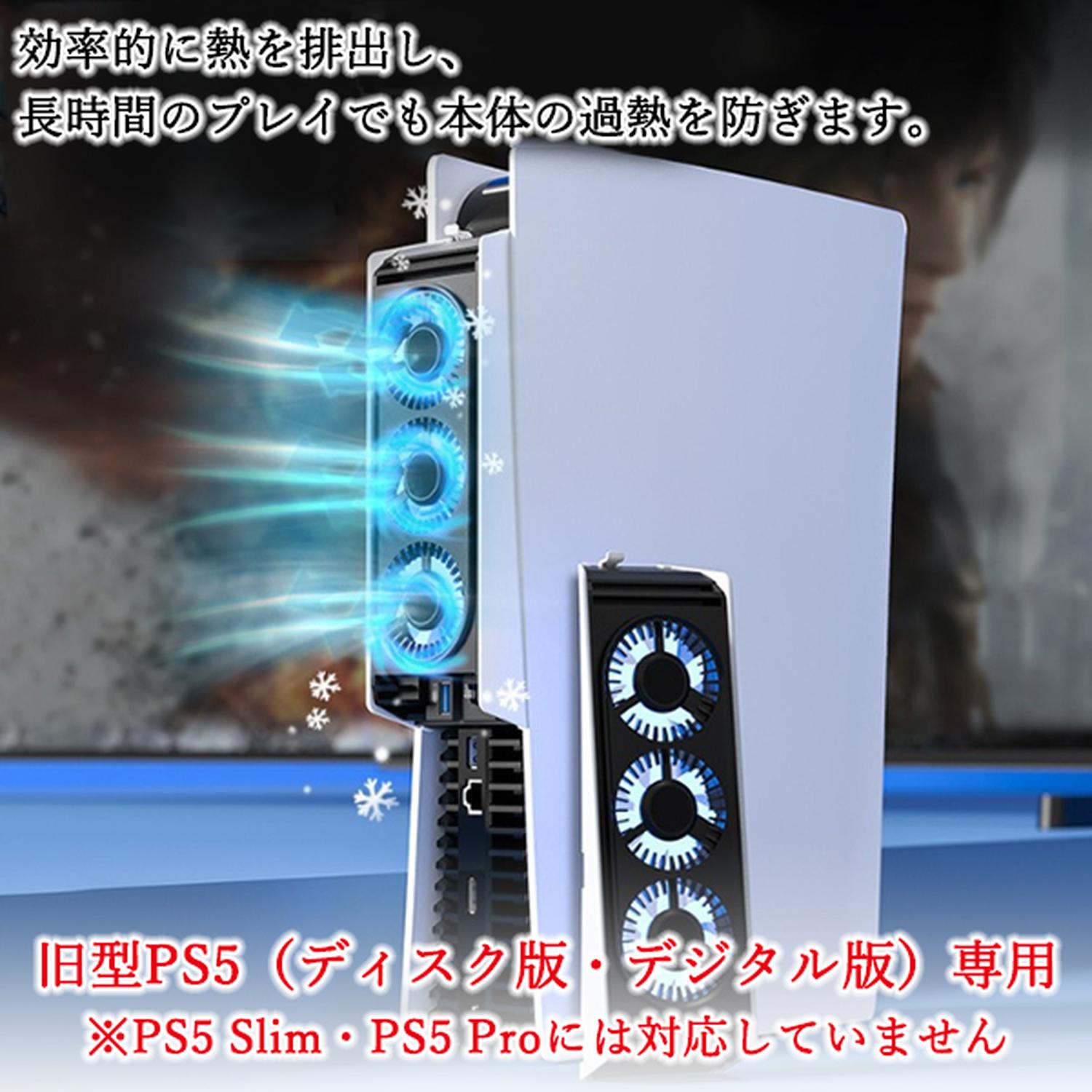 PS5用 冷却ファン 旧型PS5用 放熱クーラー 2段階風速 LEDライト USB3.0ポート ディスク版 デジタル版対応 PS5 Slim/Pro非対応 ((S