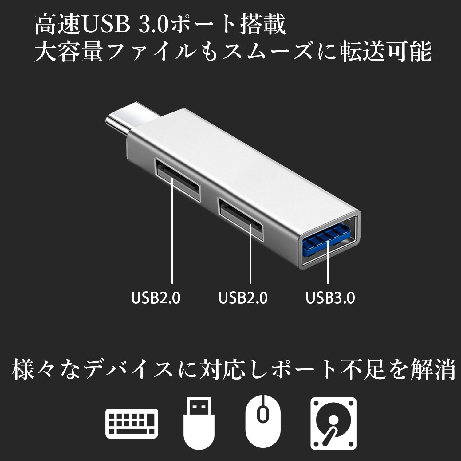 USB Type-C ハブ 3ポート USB3.0 高速データ転送 軽量コンパクト ノートパソコン スマホ対応 Windows/Mac/Android対応 USBハブ ((S