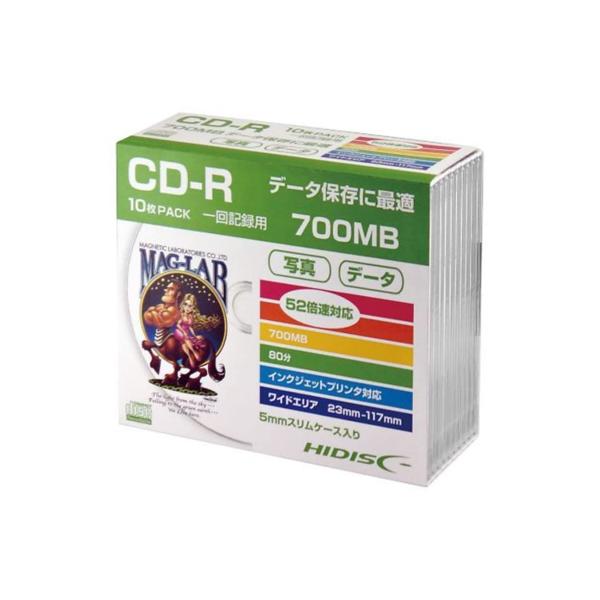 磁気研究所 HIDISC CD-R データ用 700MB 52倍速対応 5mmSlimケース入り ホワイト ワイドプリンタブル HDCR80GP10SC 10枚パック