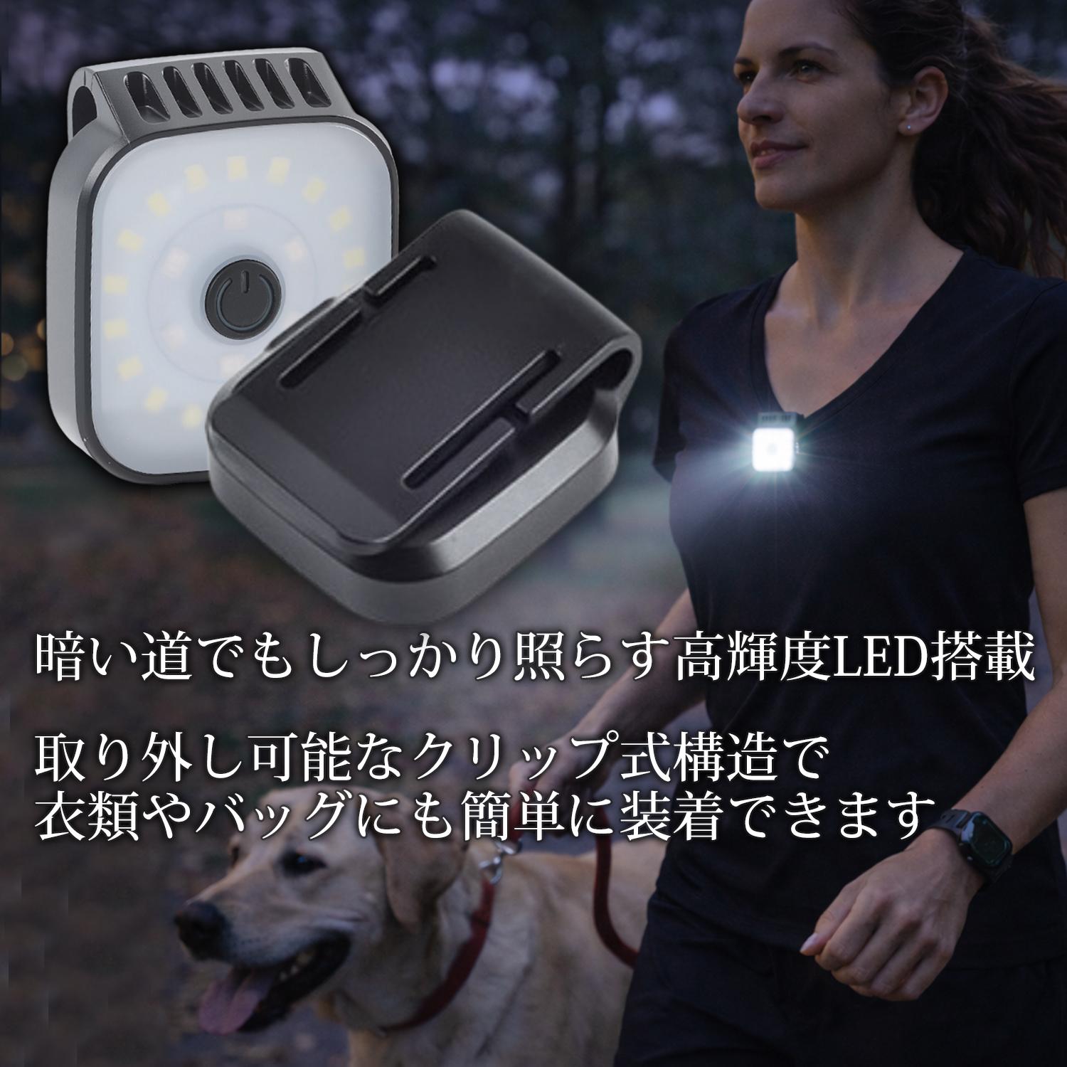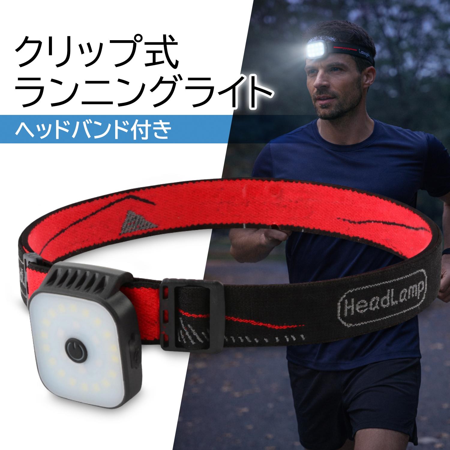 ランニングライト 充電式 クリップ 26g超軽量 ヘッドバンド付き ウォーキング 散歩 ヘッドライト LEDライト タイプc充電 ((S