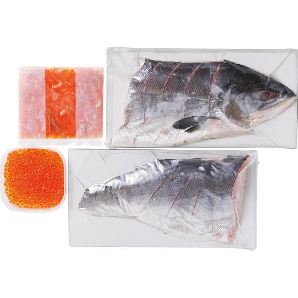・北海道産新巻鮭姿切身700g(甘塩味・2分割真空)、鮭ルイベ漬100g、いくら醤油漬80g