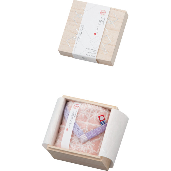 今治謹製 千歳はんかちタオルハンカチ(木箱入) ピンク