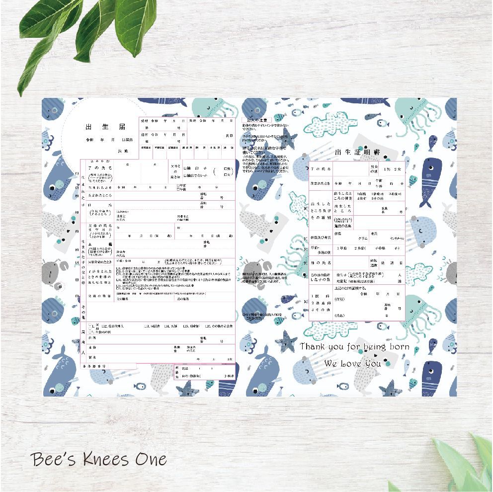 【役所に提出できる】デザイン出生届『海のいきもの(男女可)』 バースプラン 出生 誕生 出産 マタニティ