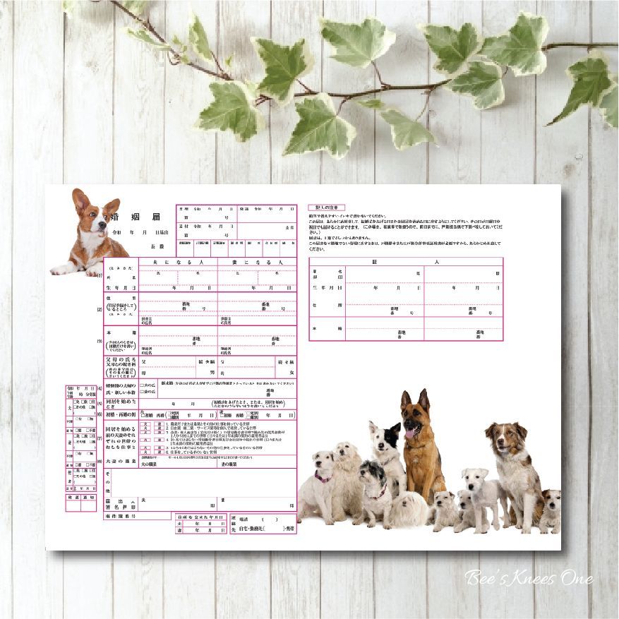 デザイン婚姻届 『Dog-犬』オリジナル婚姻届 役所に提出できる婚姻届け