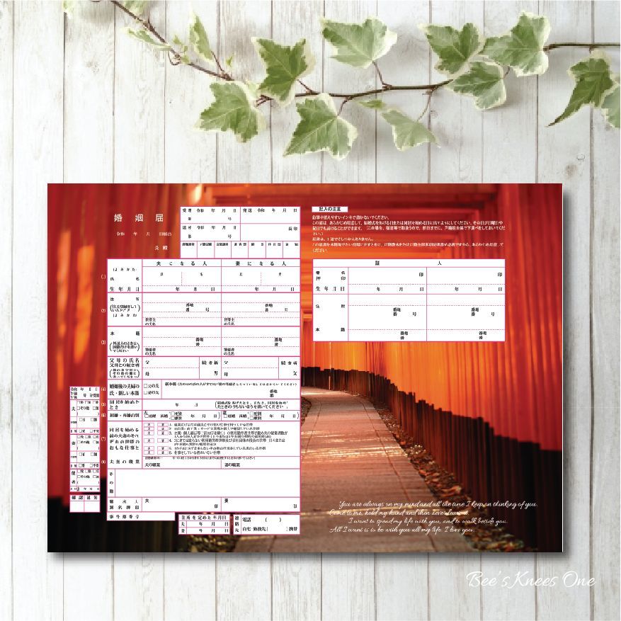 デザイン婚姻届『赤い鳥居』 オリジナル婚姻届 役所に提出できる婚姻届け