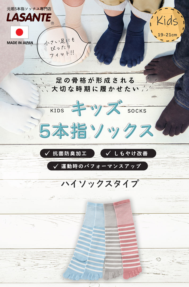子供の足の臭いが気なる!| 品番:商品名 | 10484:ボーダーキッズ5本指ハイソックス(5本指靴下) |