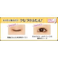 使用方法:ふたえにしたいラインの下に貼ります。付属のスティックでテープをおさえながら目を開けてください。