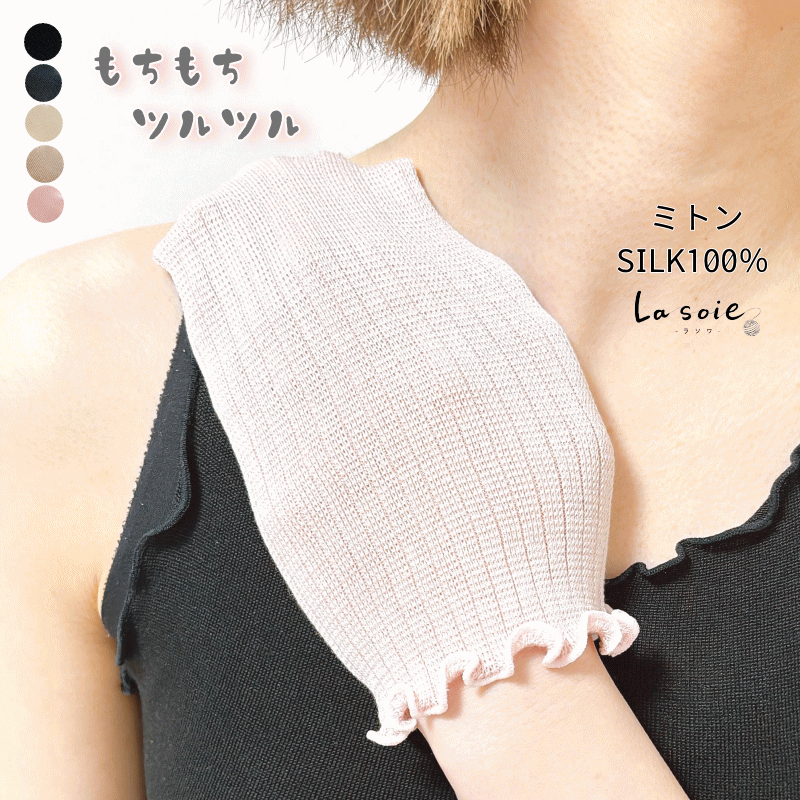 シルク ミトン シルク100% 日本製 二の腕 ブツブツ あかすり 角質 ラソワ ミトン