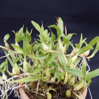 ラン科・ディネマ属の多年草 メキシコから中米、カリブ海諸国に分布する小型のラン。 極小型のバルブに小さな葉を2枚つけ、その中央から甘い香りの小型の花を咲かせます。 初心者の方にもおすすめの強健種。