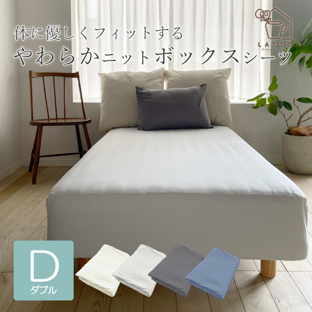 ボックスシーツ ダブル ニット 綿 コットン しっとり ストレッチ おしゃれ 寝具 100×200c×30cm