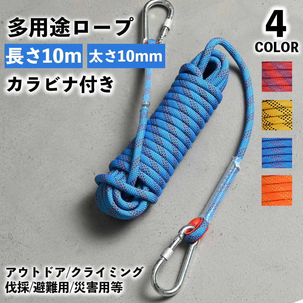 クライミング ロープ 10m 多機能ロープ アウトドア ザイル 10mm ガイロープ テントロープ 多用途ロープ カヤック 船 伐採 係留ロープ カラビナ ボート