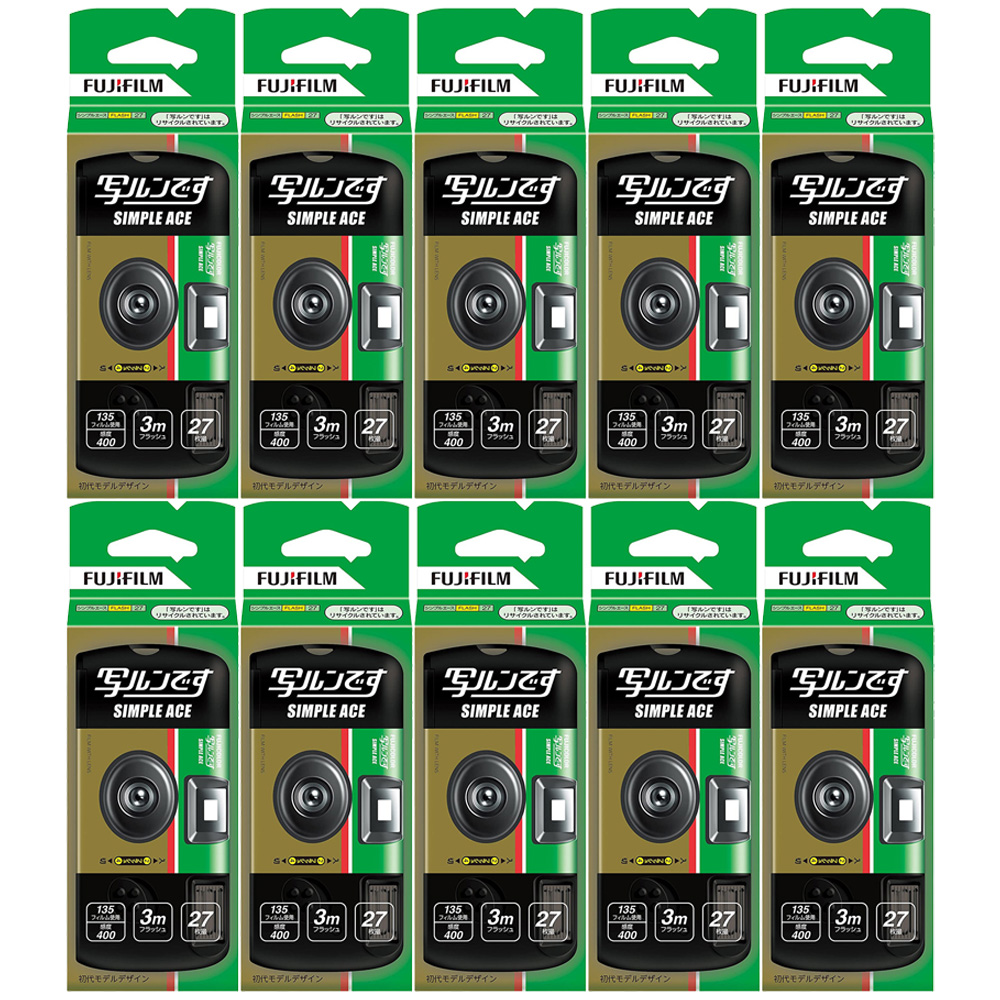 【お得な10個セット!!】FUJIFILM フジカラーレンズ付フィルム 写ルンです スタンダードタイプ シンプルエース 27枚撮り 初期モデルデザイン