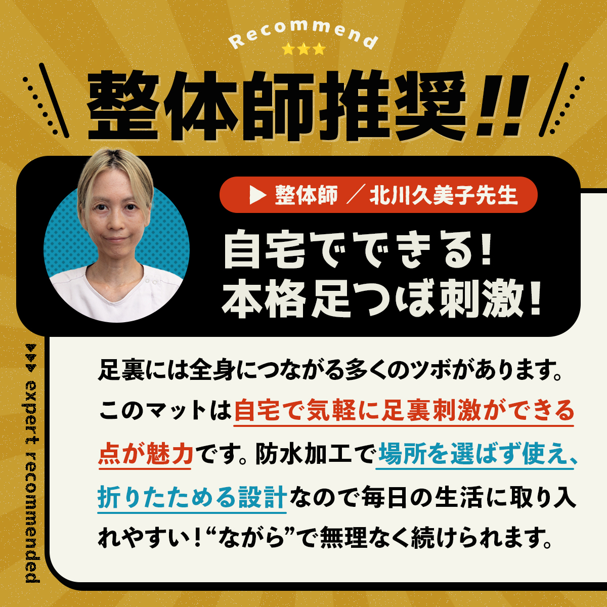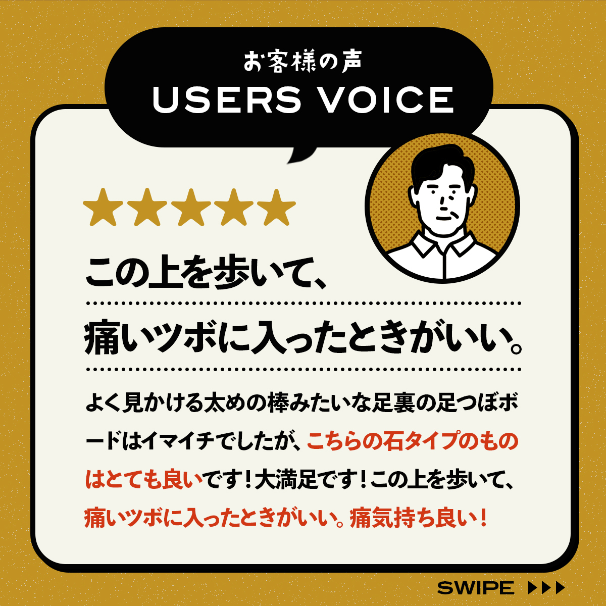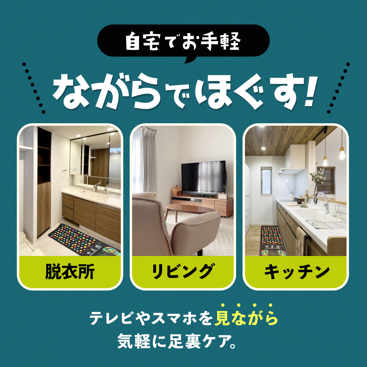 踏むだけで手軽にツボ押し。テレビを見ながら、デスクワークの合間に最適。