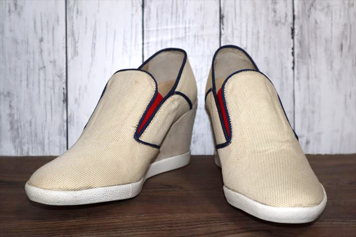 右 外側革部分キズあり 内側ボンドの汚れ 甲汚れ 後ろ側裂けている様に見える 左右 全体にシワ