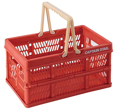 キャプテンスタッグCAPTAIN STAG 折りたたみ コンテナ カゴ フォールディング ハンディ コンテナ 取っ手付き Sサイズ レッド UL-1040