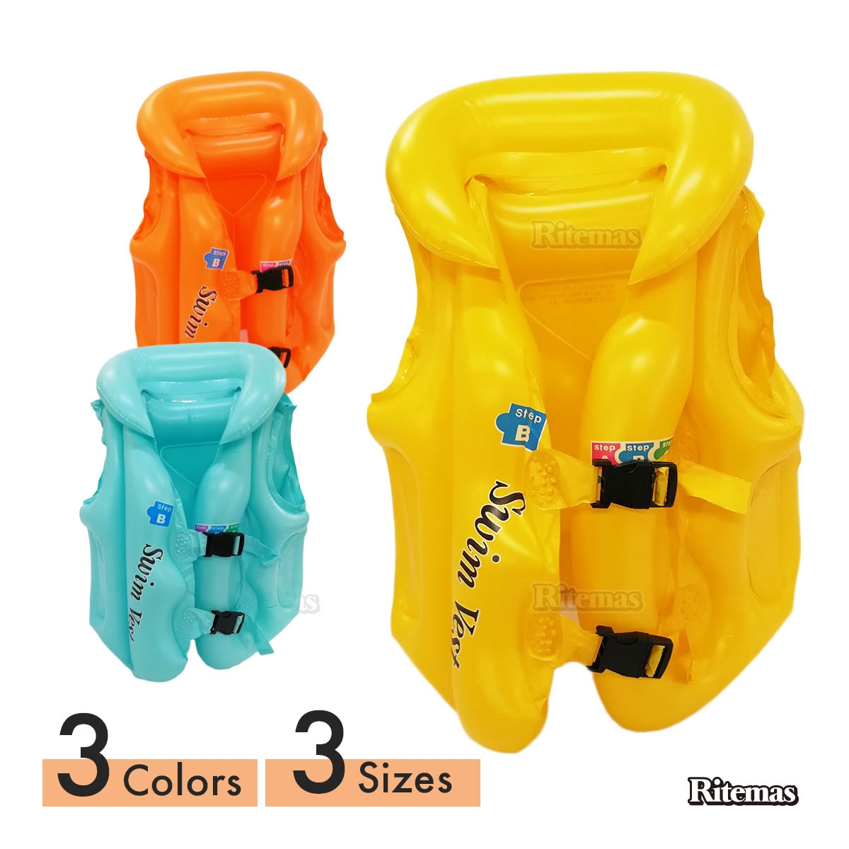 浮き輪型 ライフジャケット 子供用 エアー スイムベスト ベスト ジュニア キッズ 幼児 こども スイミング プール 海水浴 水遊び 3~4歳推奨