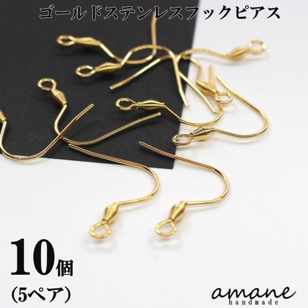 フックピアスパーツ ステンレス ゴールド バネ付き 10個 ハンドメイド パーツ ピアス用金具