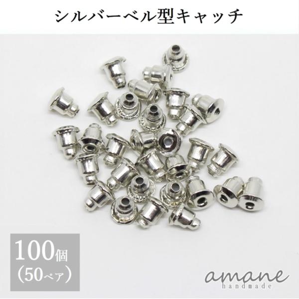 ピアスキャッチ ベル型 シルバー シリコン 約100個 ハンドメイド ピアス用金具