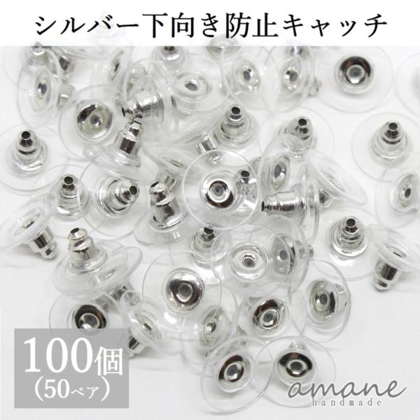 ピアスキャッチ 下向き防止 シルバー シリコン 落ちない 樹脂 約100個 ハンドメイド パーツ ピアス用金具
