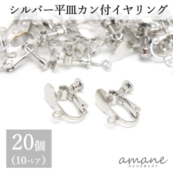 イヤリングバネ式 丸皿 カン付 シルバー 20個 アクセサリー パーツ