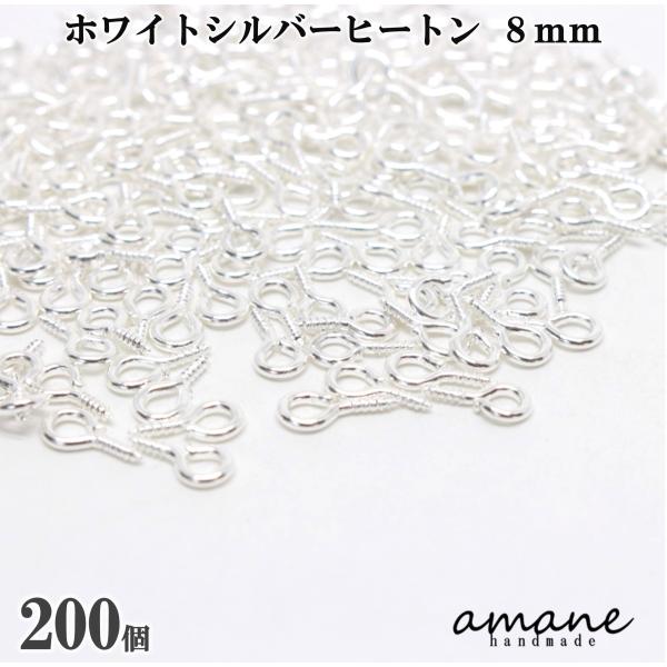 ヒートン 金具 ホワイトシルバー 8mm 根付け用金具 200個 アクセサリー用