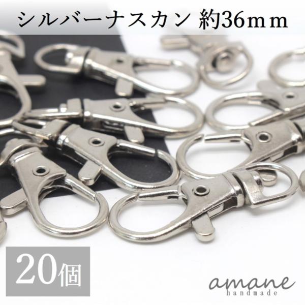 ナスカン シルバー 20個 約36×16mm 留め具 キーリング キーホルダーパーツ 部品 ハンドメイド 接続金具 アクセサリーパーツ
