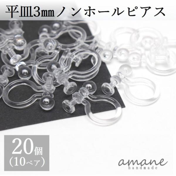 ノンホールピアス ピアス風イヤリング 平皿 3mm 樹脂 20個 プラスチック イヤリング用金具