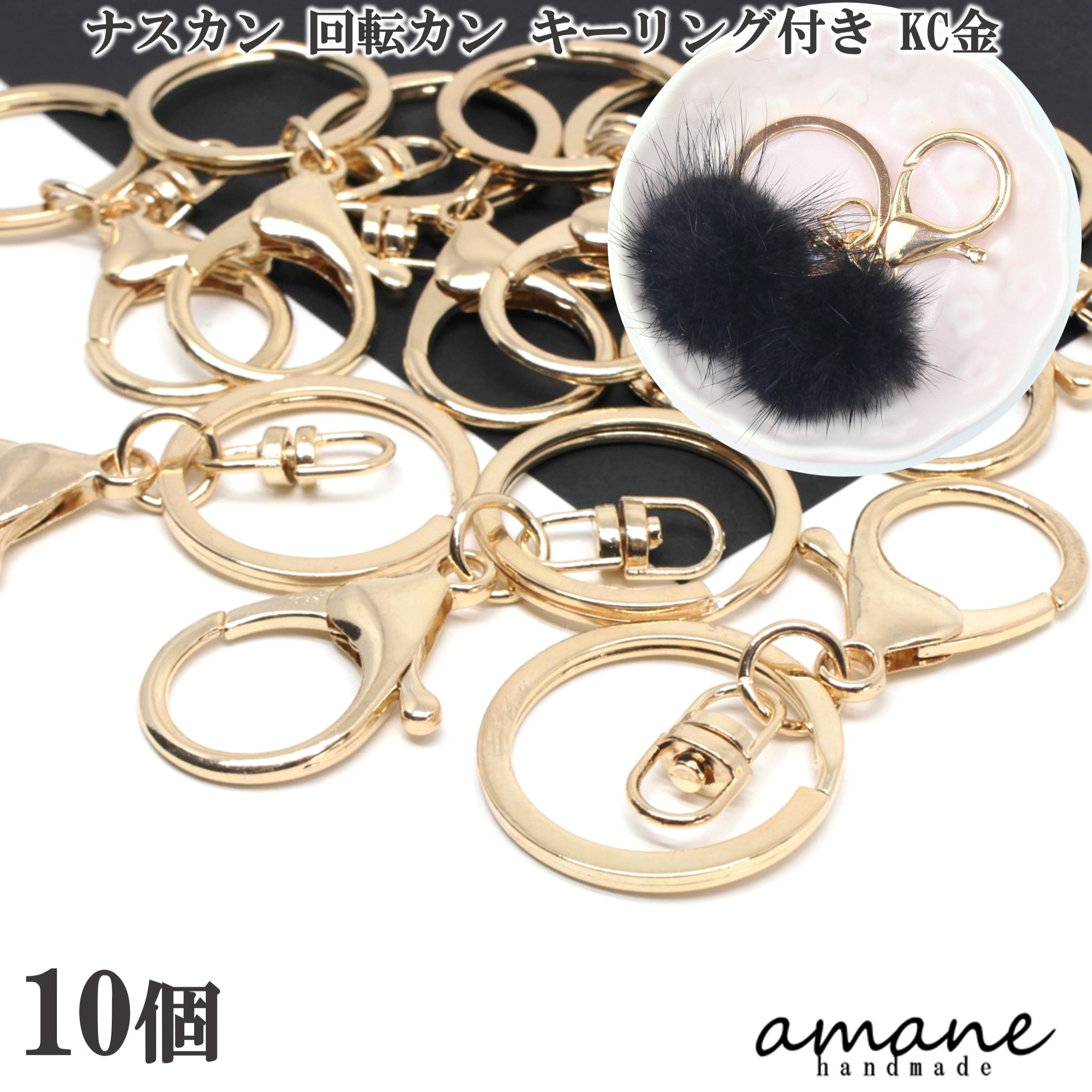 ナスカン 金具 キーホルダー金具 キーリング 回転 フック 10個 KC金 ゴールド 大 キーホルダーパーツ ハンドメイド 接続金具 アクセサリパーツ 安い 卸 問屋