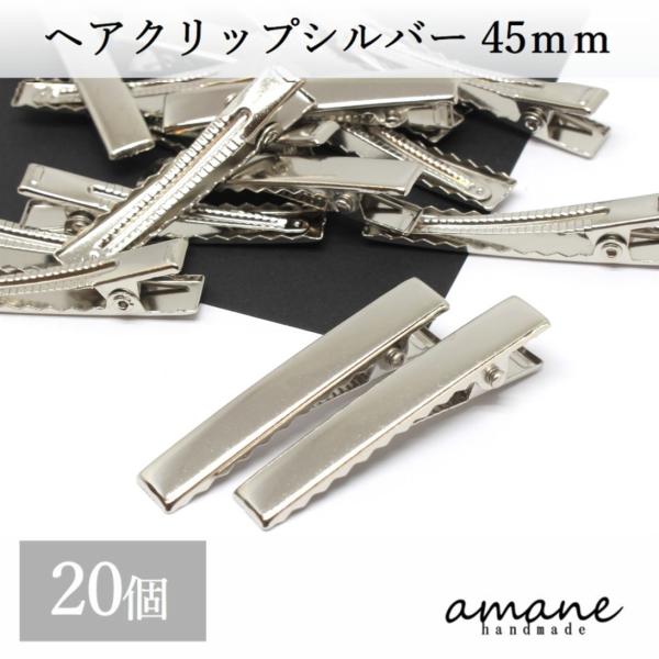 ヘアクリップ やっとこピン 大きめ シルバー ヘアピン 20個 45mm アクセサリーパーツ