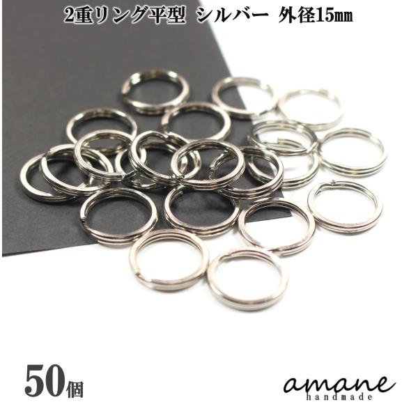 2重リング 二重カン キーリング 平型 シルバー 外径15mm 50個 キーホルダー アクセサリーパーツ 材料 接続金具