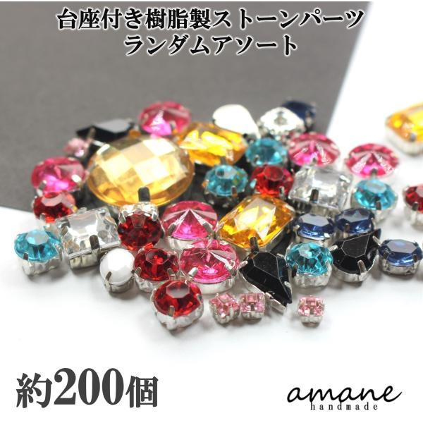 台座付き 樹脂製ストーンパーツ 200個 アクセサリーパーツ ラインストーン クリスタル ハンドメイド 材料