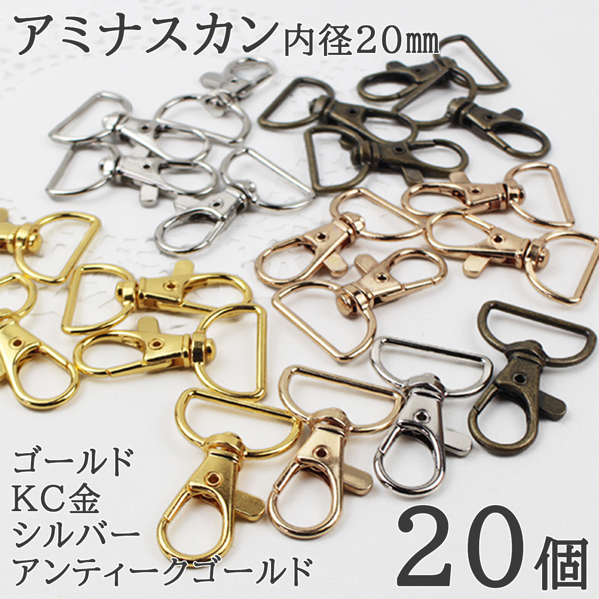 アミナスカン ナスカン 内径20mm キーホルダー金具 KC金 シルバー 20個 接続金具 材料 パラコード マクラメ スマホショルダー ハンドメイド 手芸 手作り